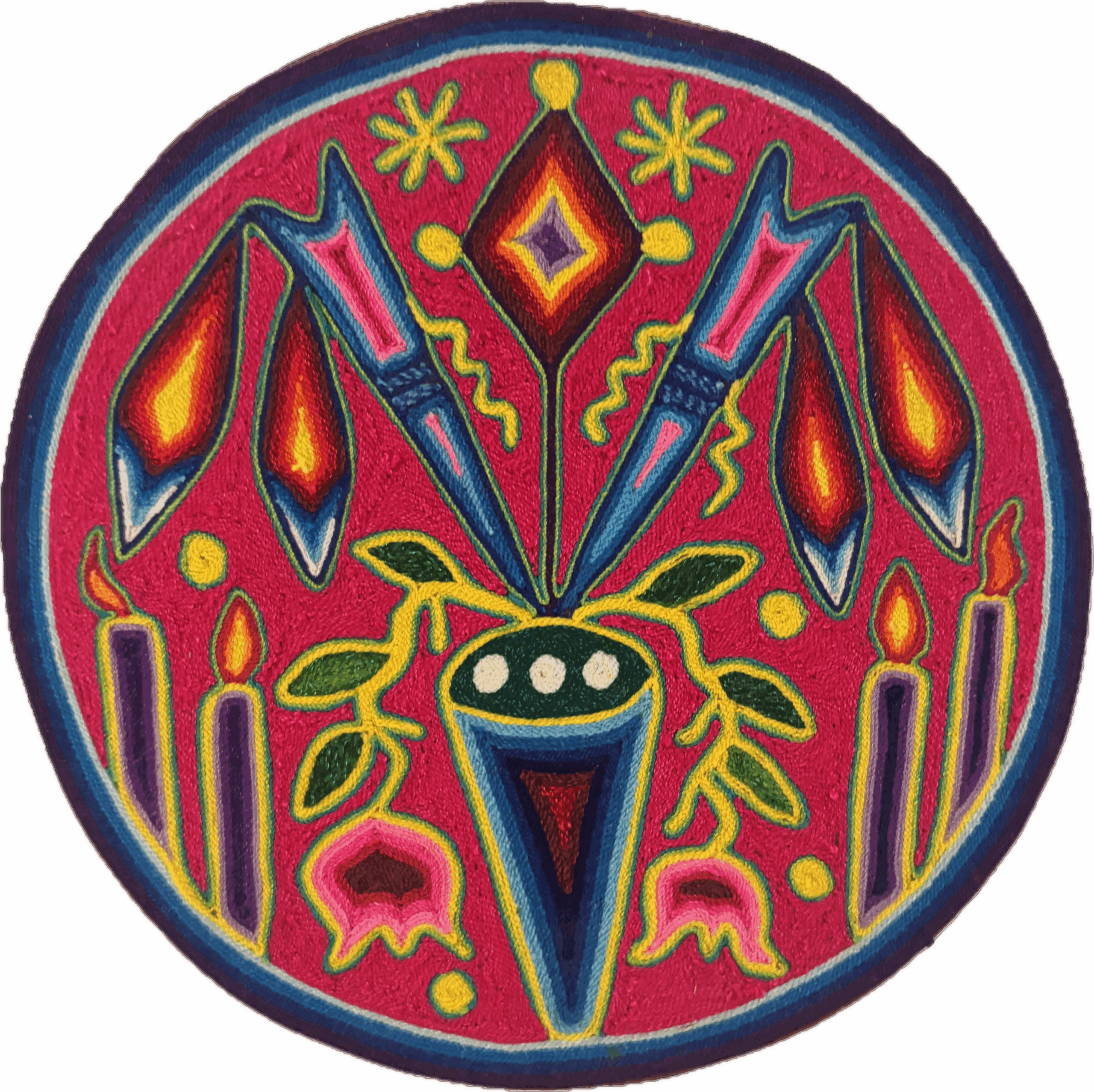 La Ceremonia de Vida – Wixarika Nierika yarn painting